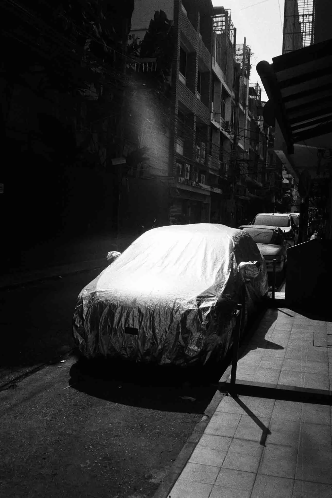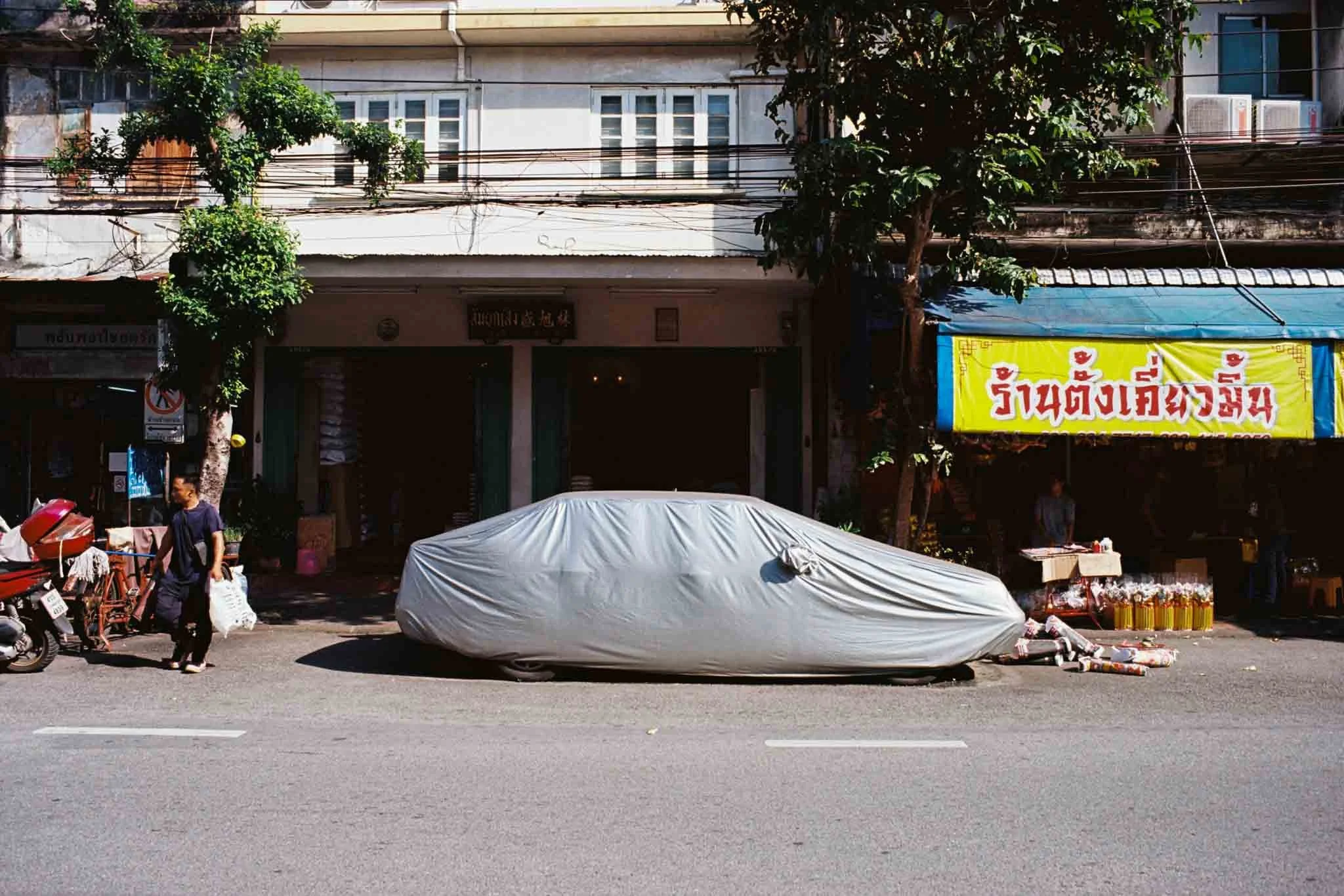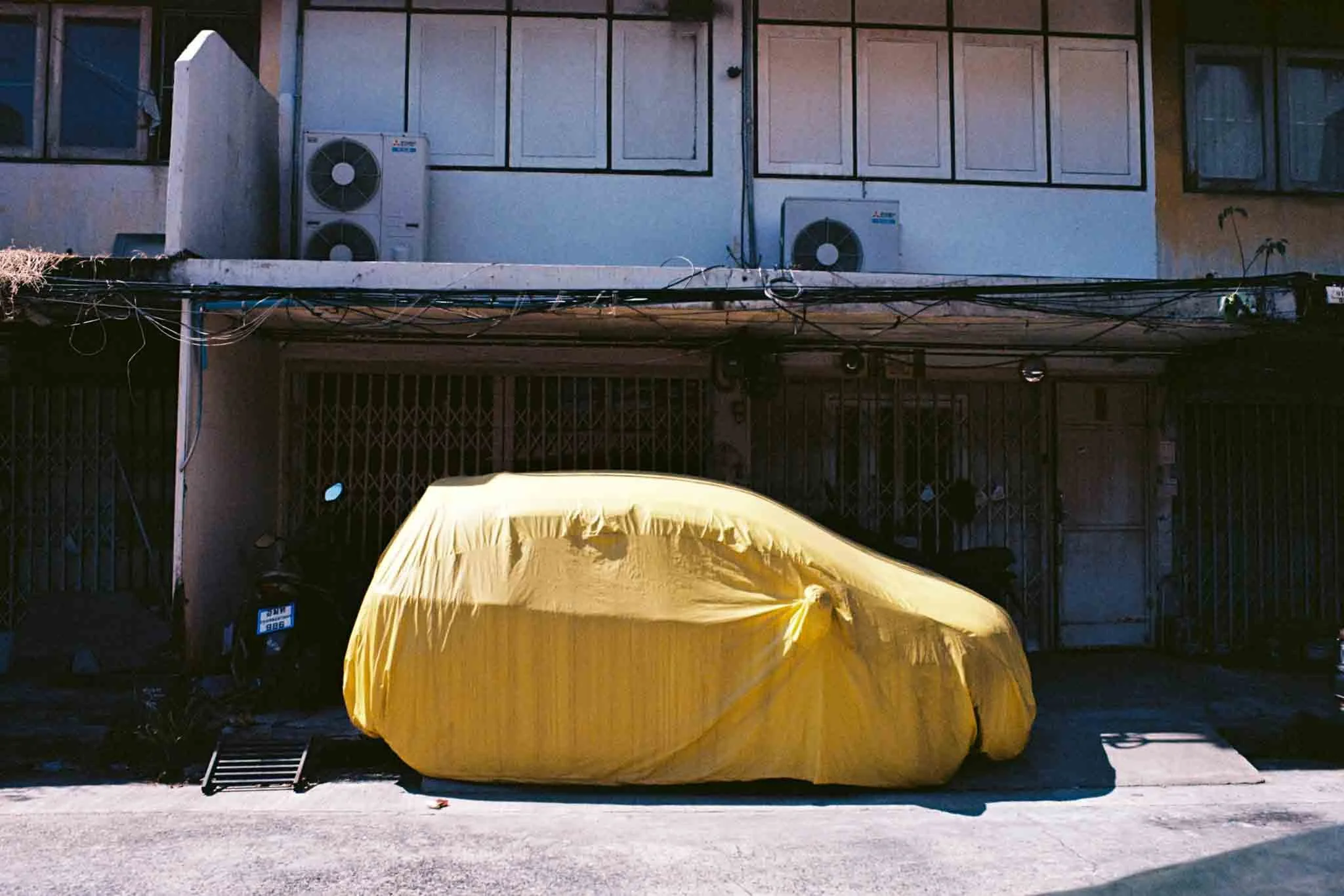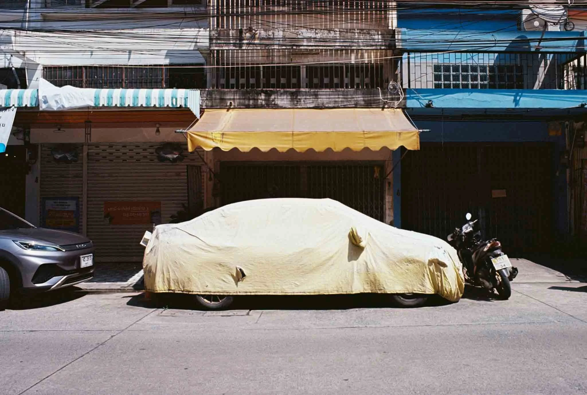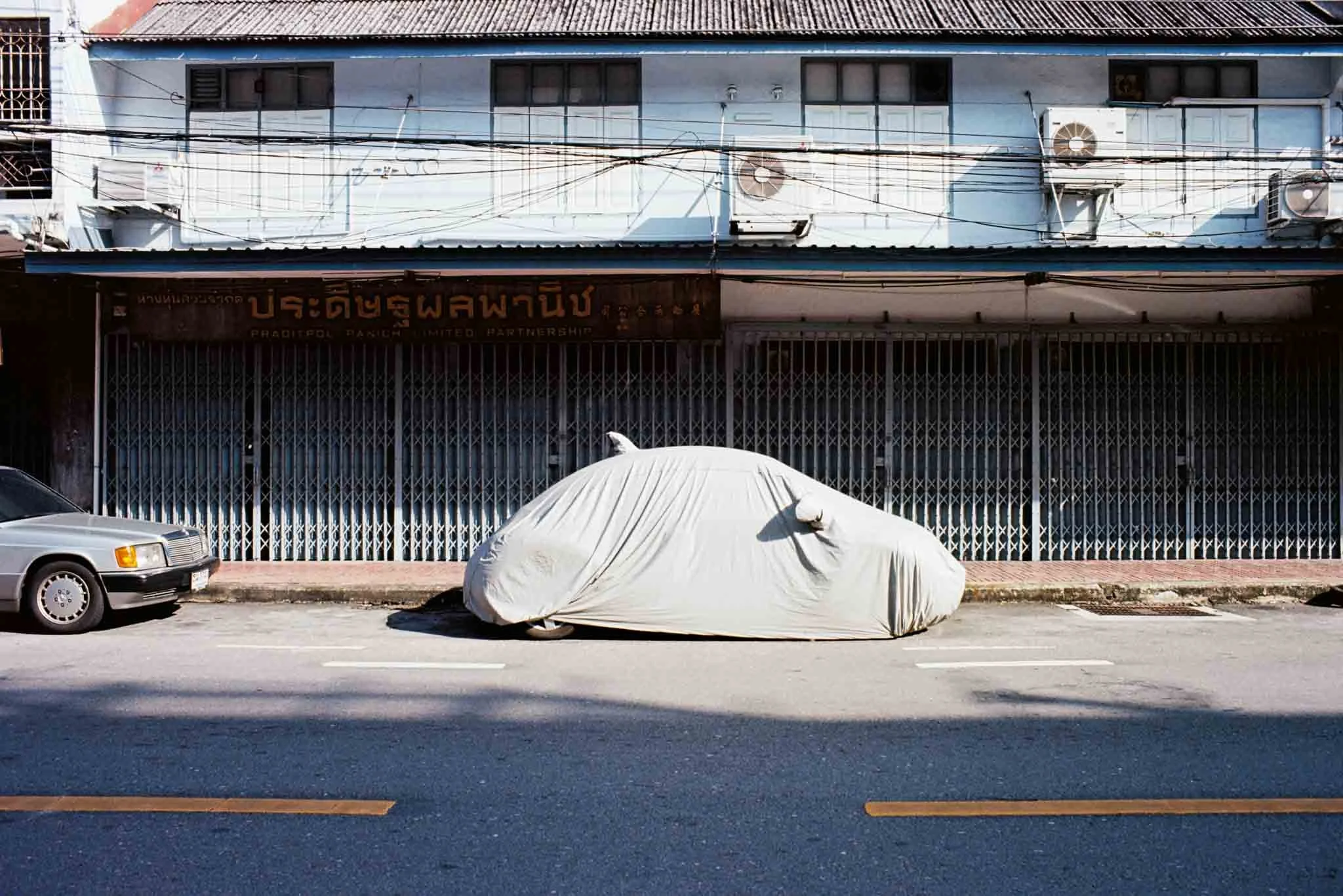 This is sub-series within the Skin project, focusing on one of Bangkok’s quiet street landmarks: the plastic sheets that cover parked cars to shield them from the tropical harsh sun. These thin veils transform the vehicles into still, ghost-like figures. What was meant as a practical gesture becomes an accidental act of preservation, a portrait of the city’s heat, light, and improvisation.