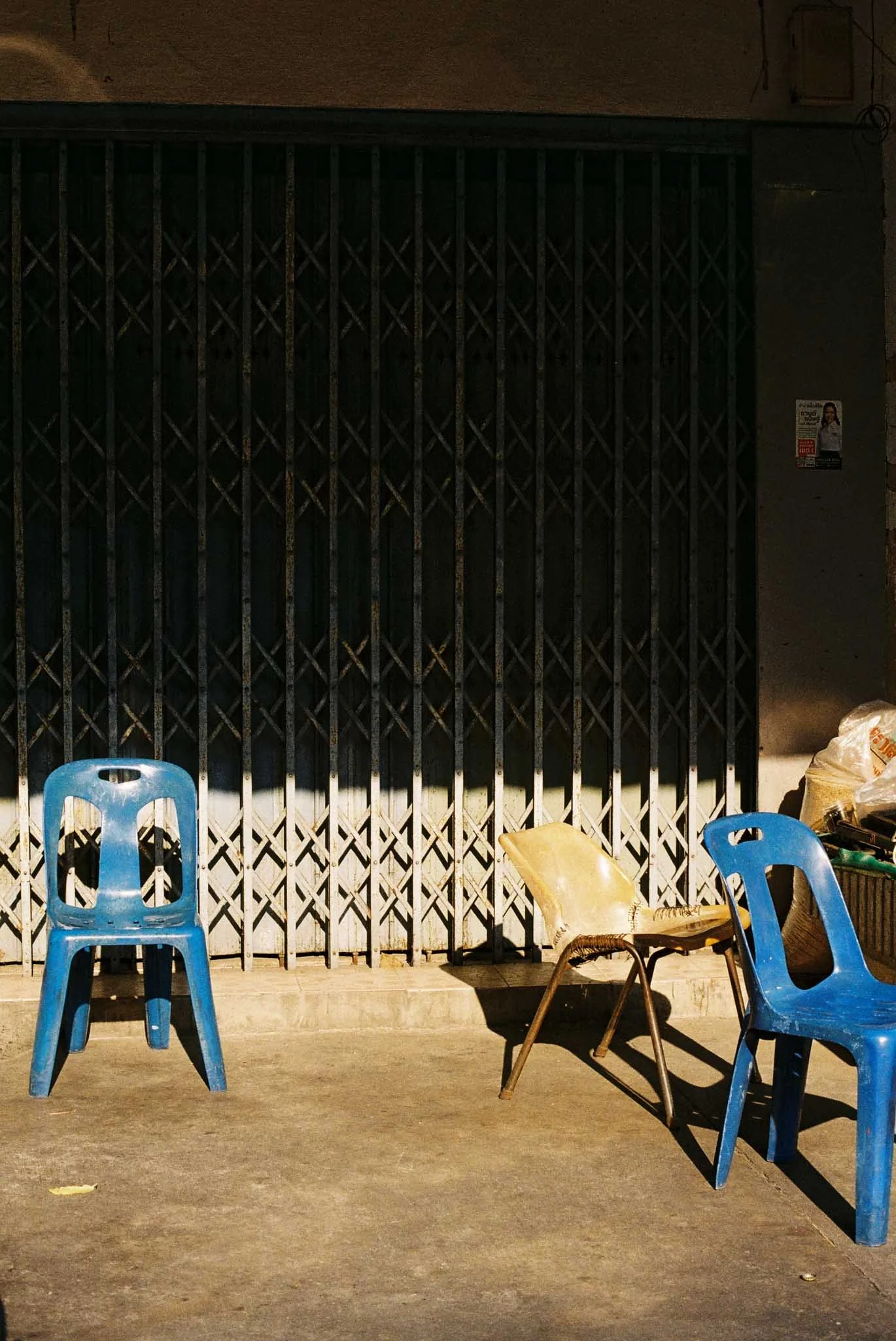 Bangkok Skin explores the city’s visible surface — its textures, colours, and improvised layers that form a living map of urban life. Through close-up fragments of walls, chairs, cables, and neon reflections, the work captures Bangkok’s outer skin: an accidental yet deeply human construction shaped by use, time, and climate. Every mark and material tells a story of contact — traces of the people who inhabit the city without ever appearing in it.